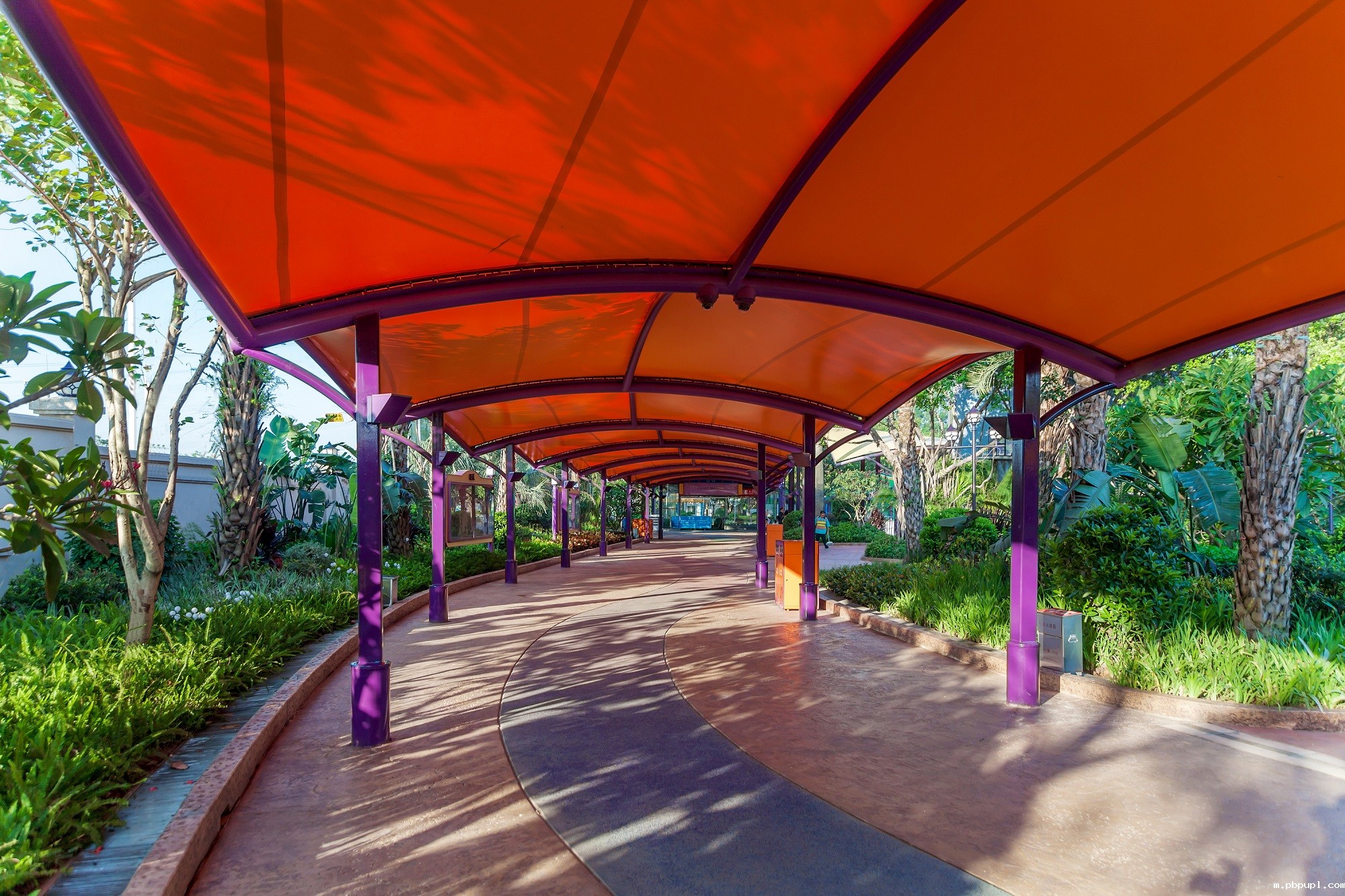 ▲彩色张拉膜顶棚具有引导游客流向的作用