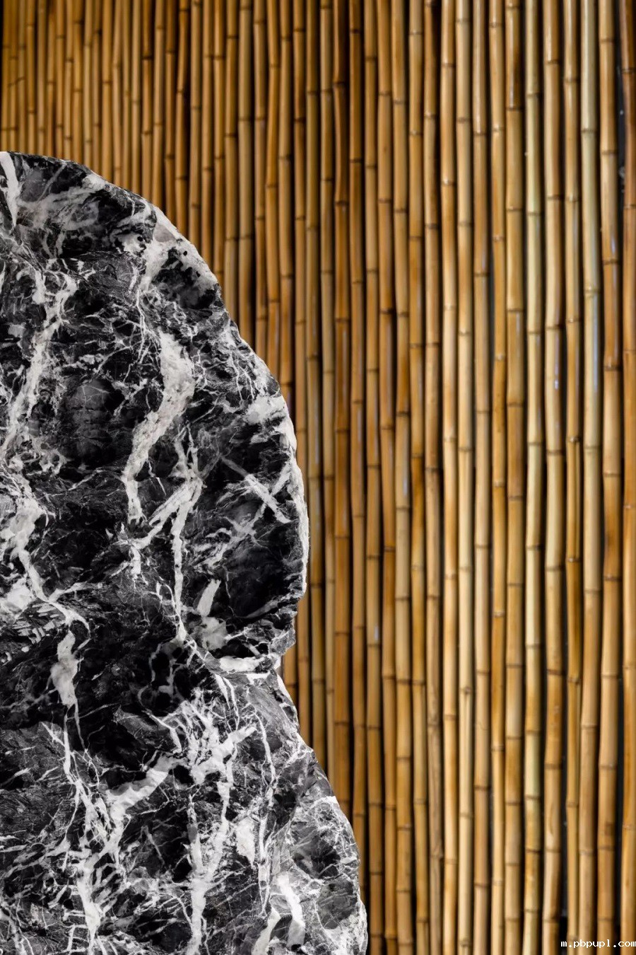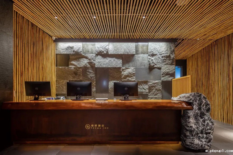 “素朴而天下莫能与之争美”,顺着青石砖路的指引进入酒店大堂,环顾四周,大面积的竹材与实木、石材互为搭配,相互映衬,瞬间被这最自然的朴素之美所“包围”。