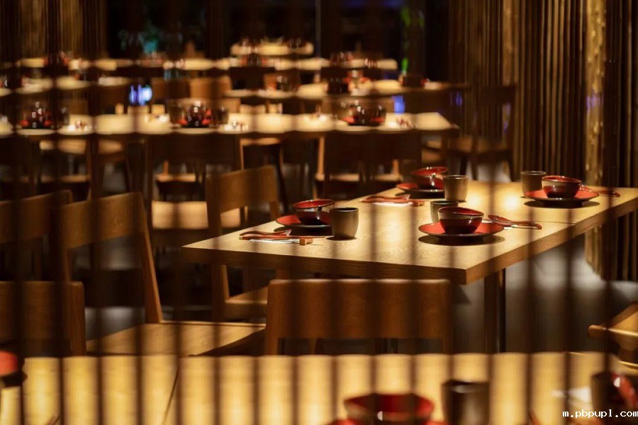 坐在等待区,隔着竹条格栅隐约看见开阔的餐厅空间,这是设计师极为用心的视觉感知设计。