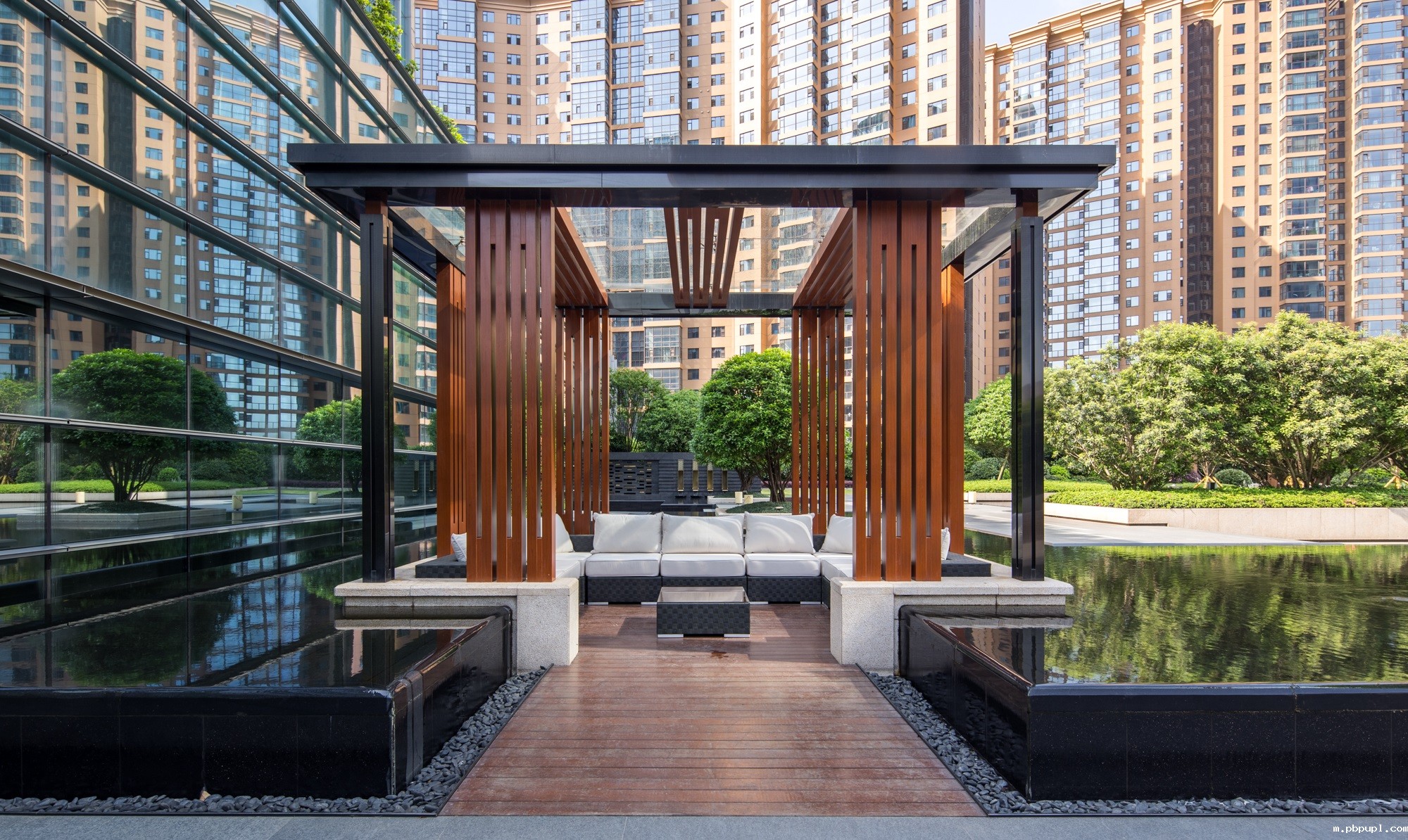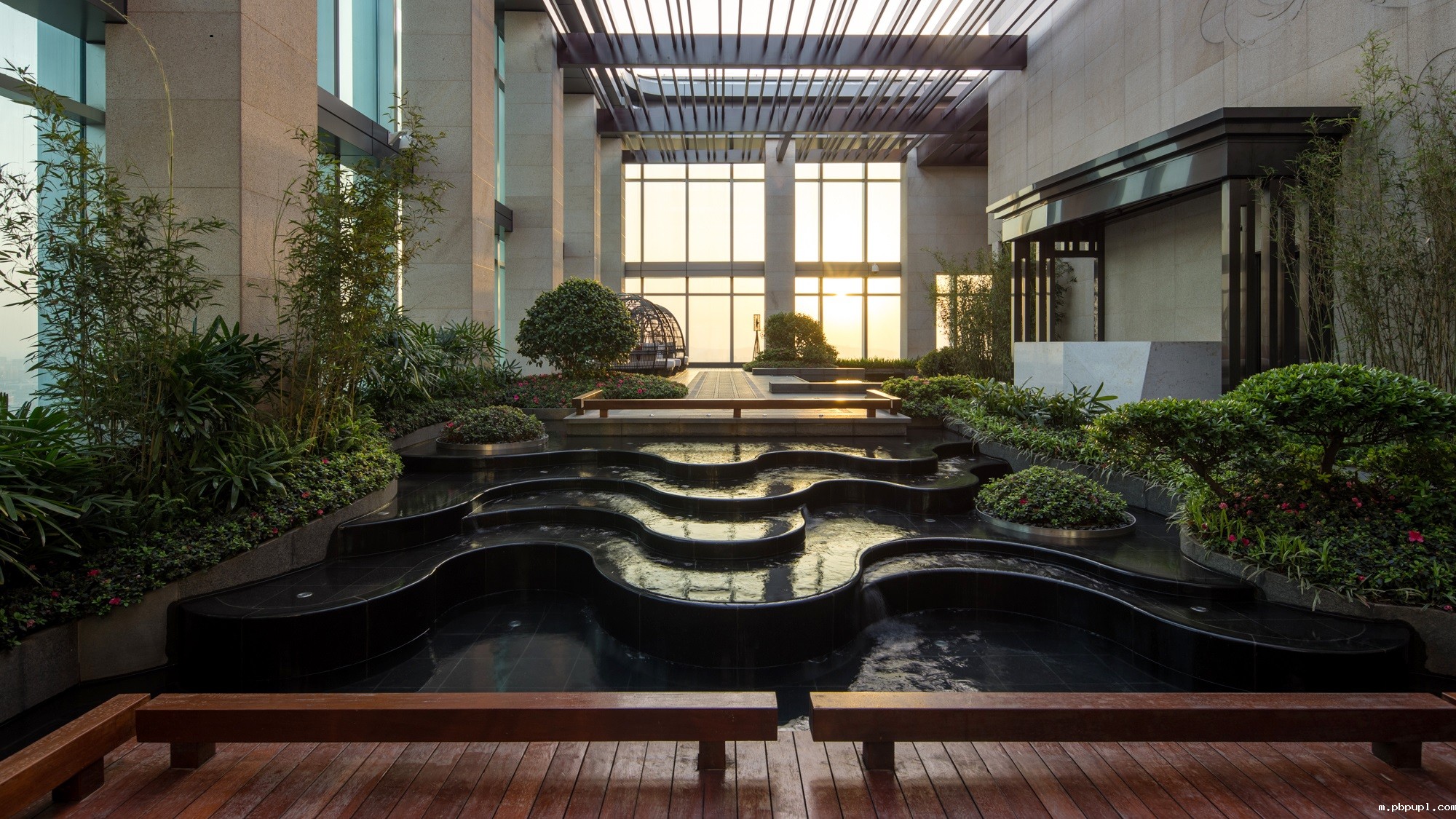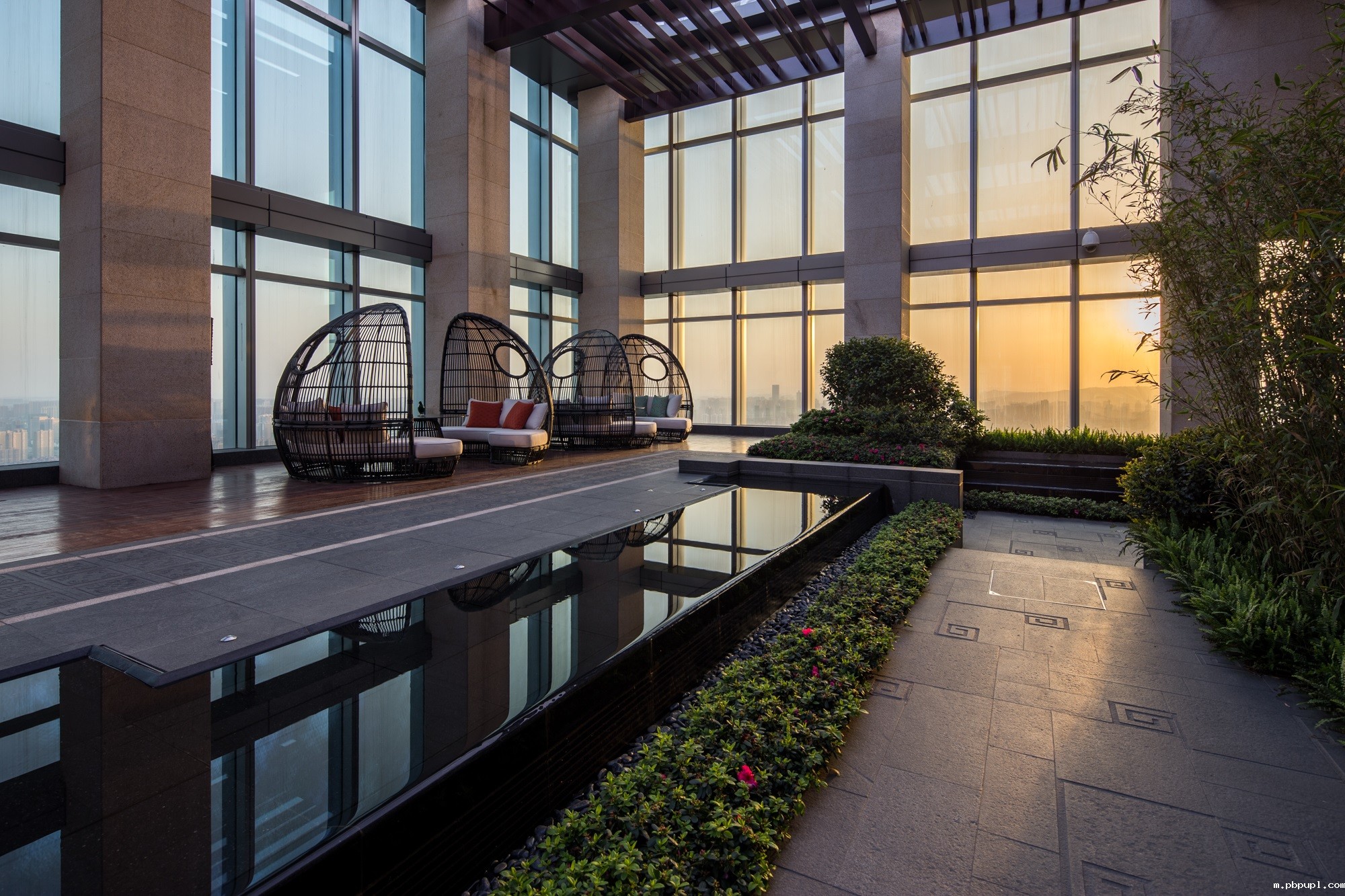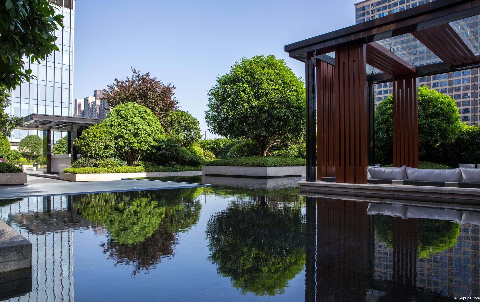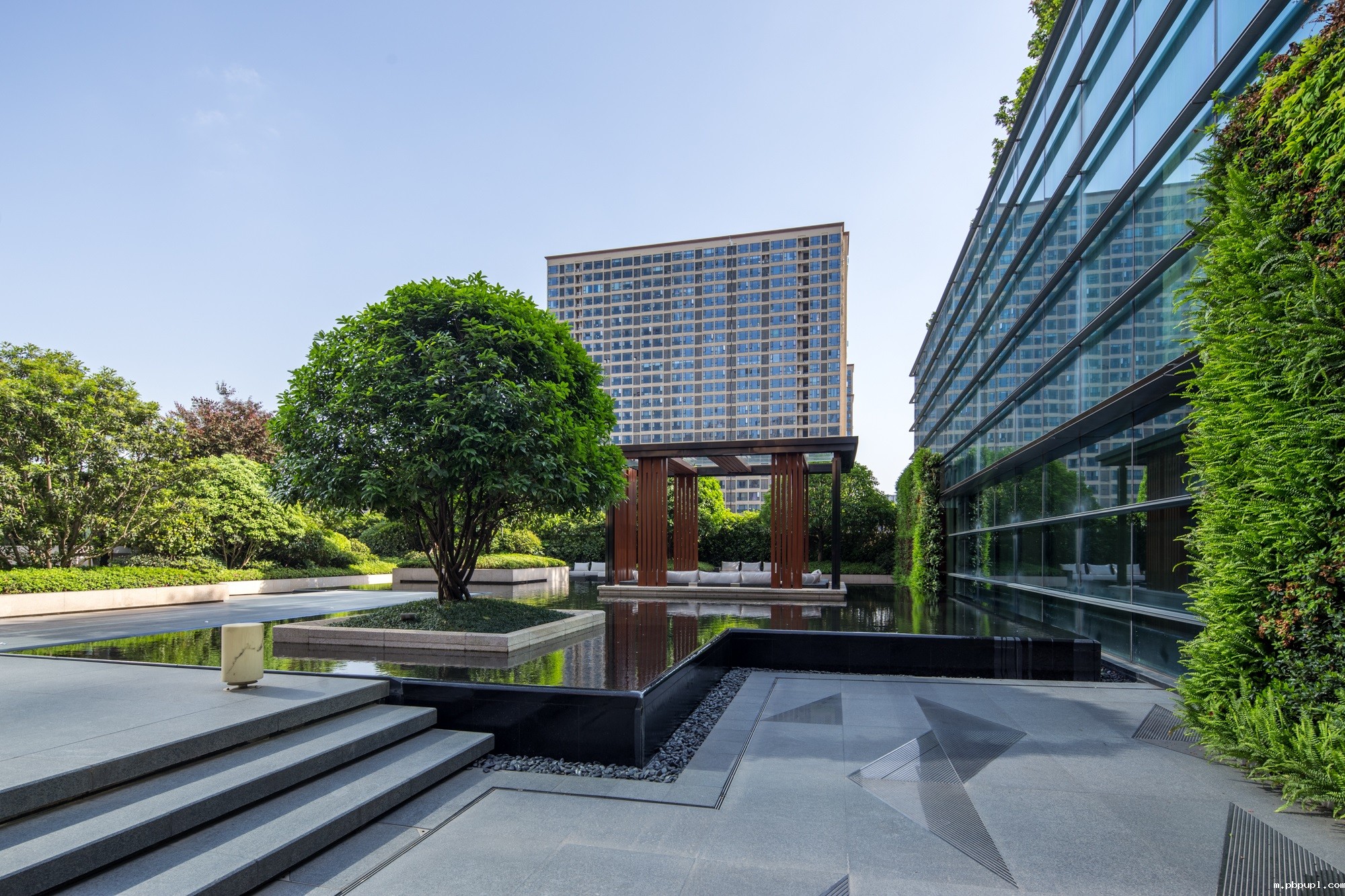 瑞吉酒店地处武广商圈核心地段。设计秉承“低碳环保”理念,运用节能、智能元素,项目成为长沙未来持续领先的星级酒店典范及时尚生活高地。景观设计以高标准的设计原则,注重新理念、新材料、新技术的应用,考虑与周围环境的协调、呼应,设计功能合理,空间舒适,达到建筑与景观的有机统一。
