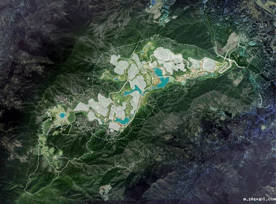 规划团队根据场地地形地貌,在最大程度保护原生山地环境不受破坏的前提下,将原规划道路重新调整,满足城市道路设计规范的同时,避免大量工程挖填方,以保留得天独厚的山体地貌、植物植被与水体资源,并赋予建设用地最大的景观价值。