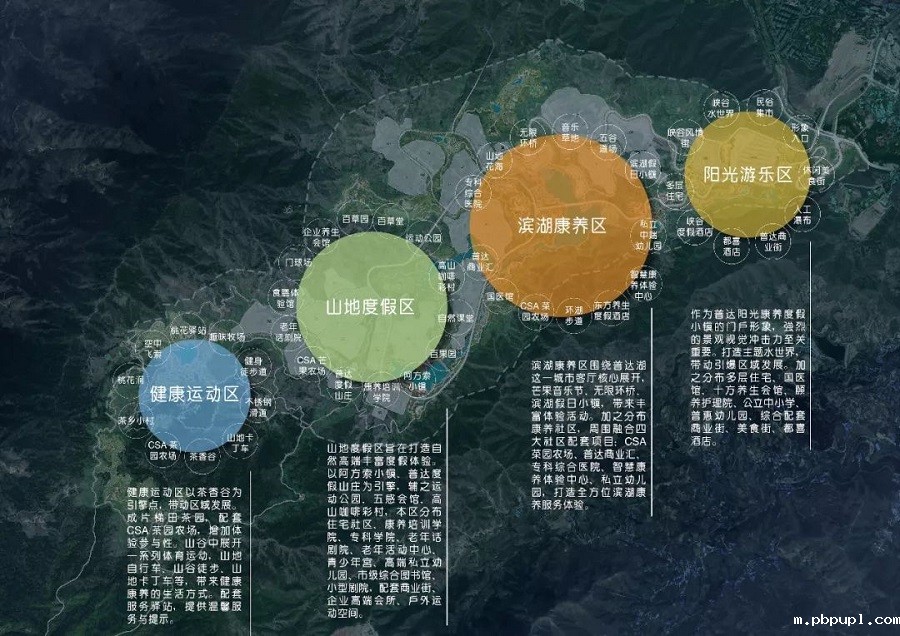 项目总规划设计以发展建设成为国家4A级旅游景区为目标,既兼顾普达阳光康养小镇的总体发展局势,亦为社区居民及游客创造亲近自然阳光、体验丰富康养、安全旅游环境的康养旅游度假地。