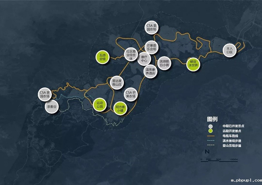 “规划调整”整合了公共开放空间系统,让出了更多的绿地空间。结合各类绿地和景观资源价值的充分挖掘,合理规划出滨水步道、滨水公园、登山径、养生餐厅、社区农庄、景观花园、有机种植园、郊野公园等旅游项目。