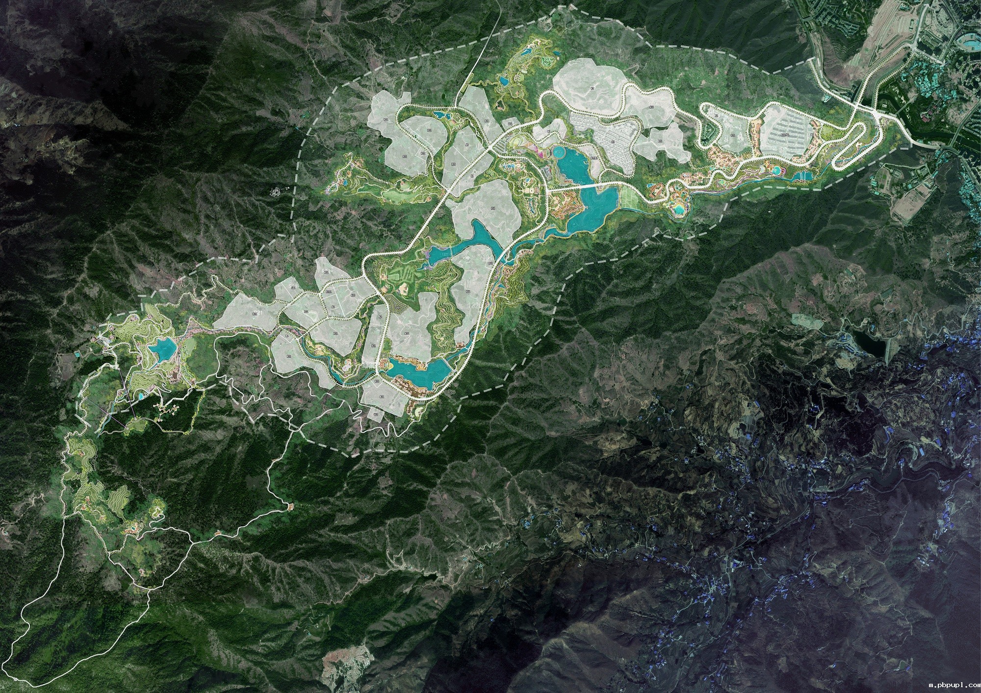 顺应场地山形地貌,挖掘具有更优质景观资源的建设用地。在优化建设用地选址的基础上,充分发挥原生态优质景观视野,保障每一个建设用地都有优良的景观资源作为开发的依托,使得开发用地更合理,同时赋予土地更高的商业溢价值。