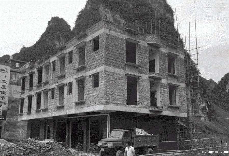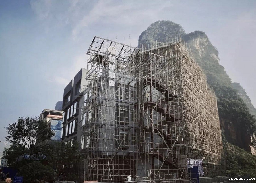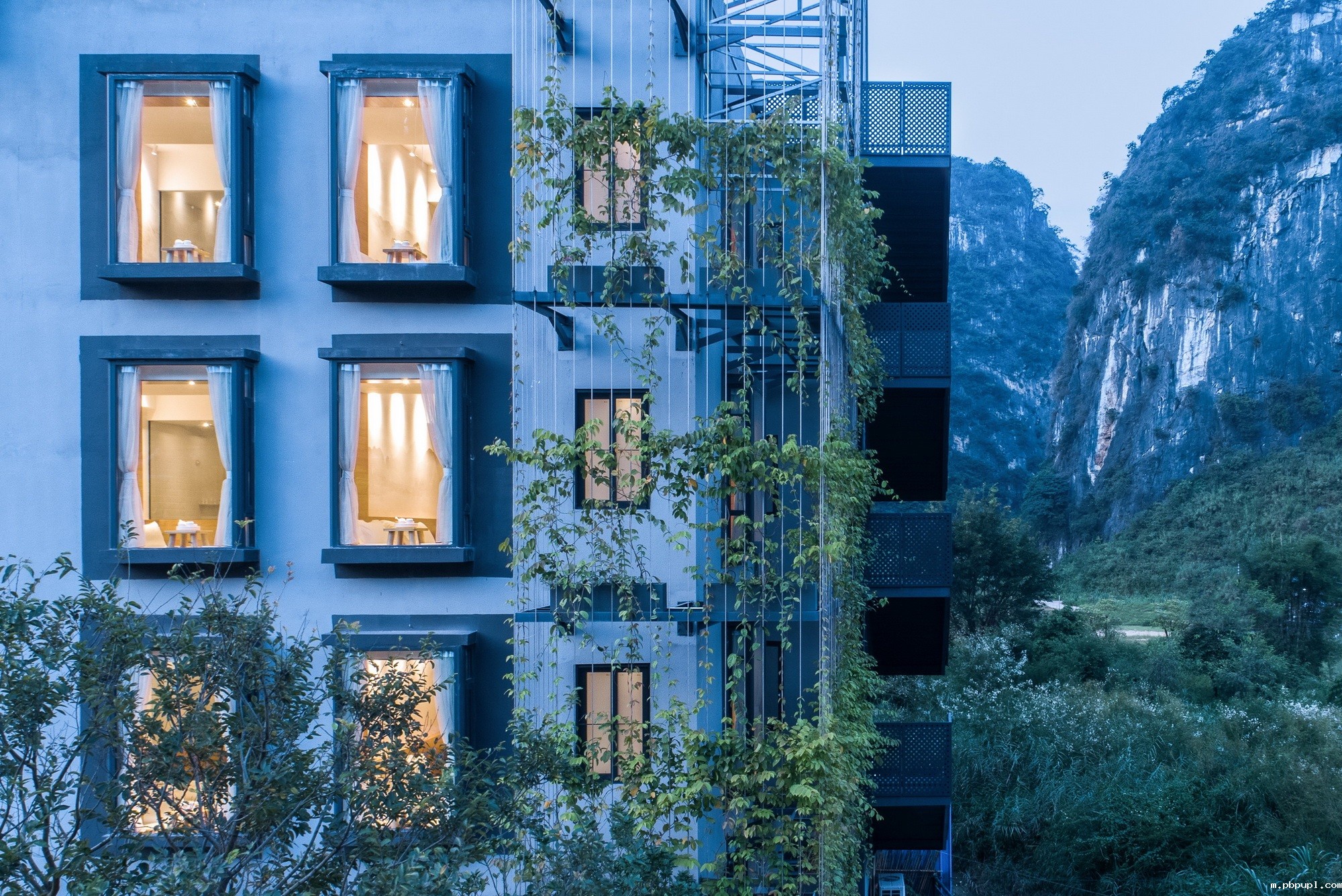 眼前这一栋尚未完工的三层建筑,就是璞驿酒店的旧址,与民房比邻而立,背面是高耸的峰林,正面是黄花镇的主干道,东南侧的黄花溪从山涧而来,淙淙流过,一切和我想象中的差不多——淳朴又美丽。