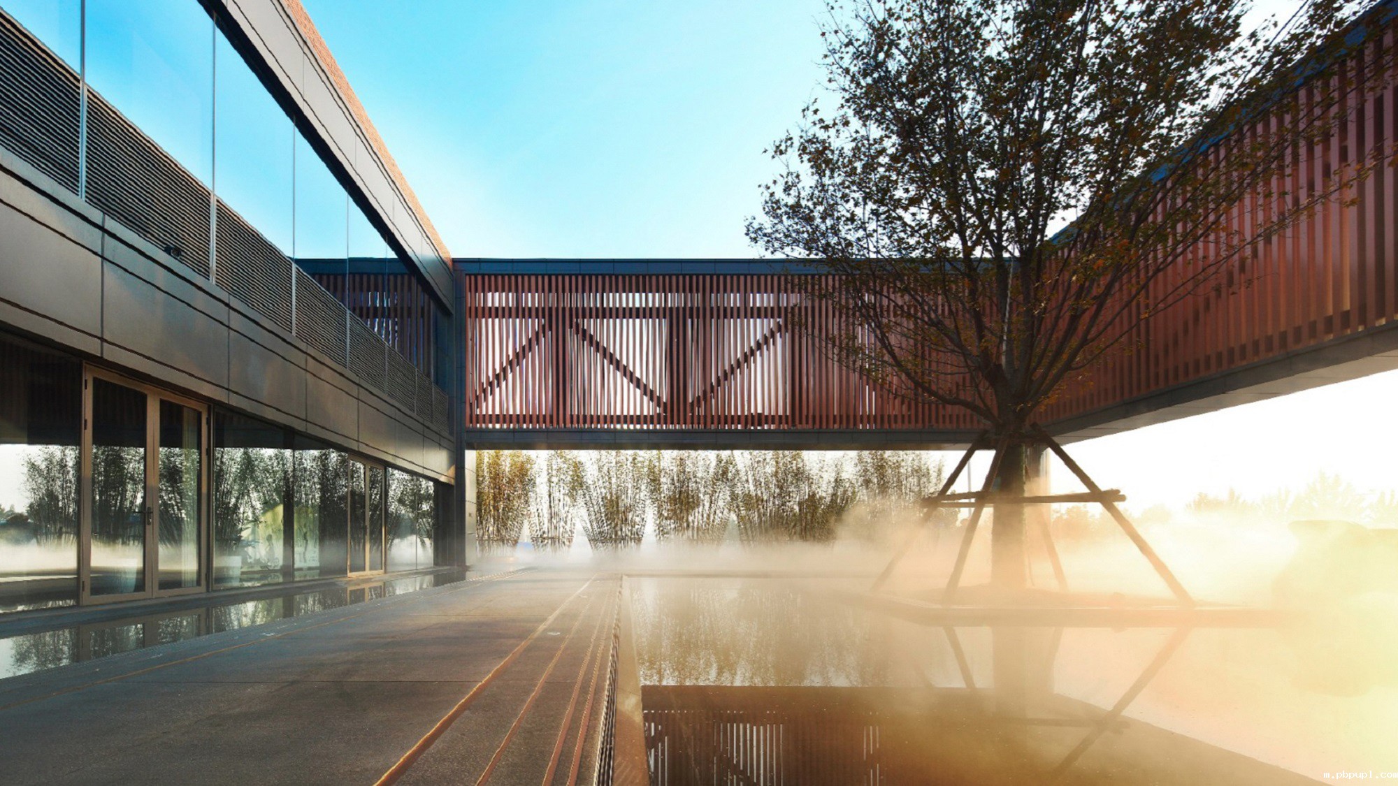 建筑运用现代主义设计手法结合文化与院落、红砖与玻璃,一文一古,一新一旧,营造闹市
