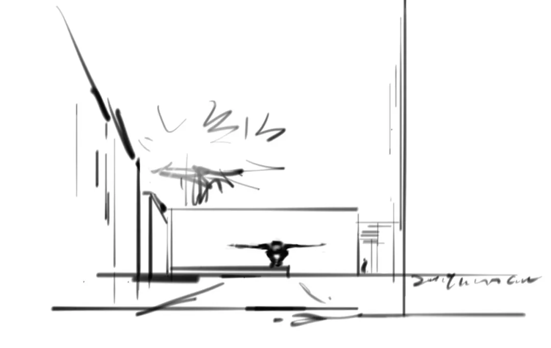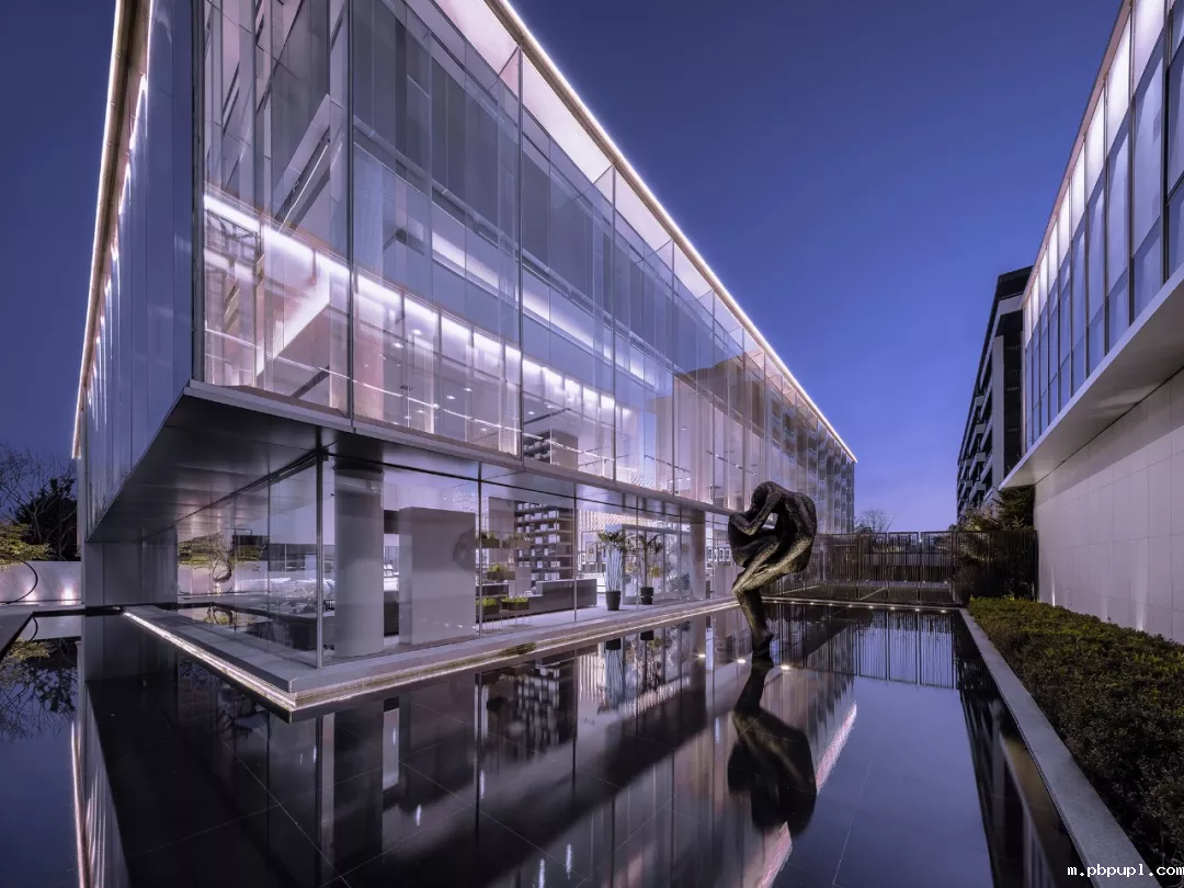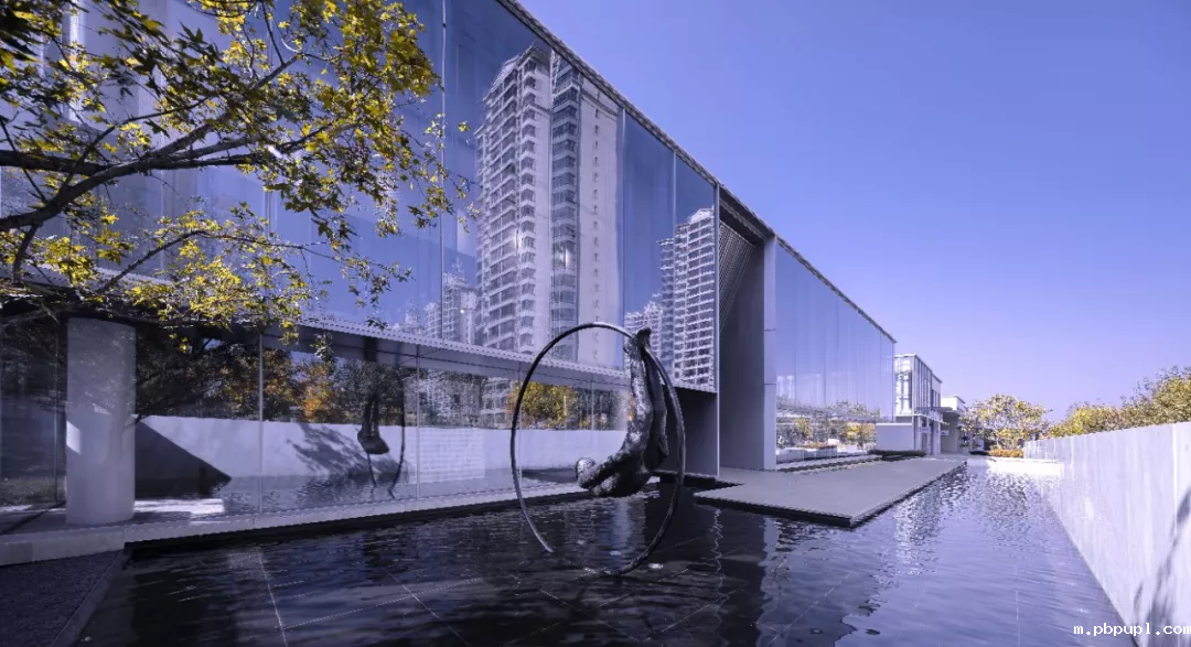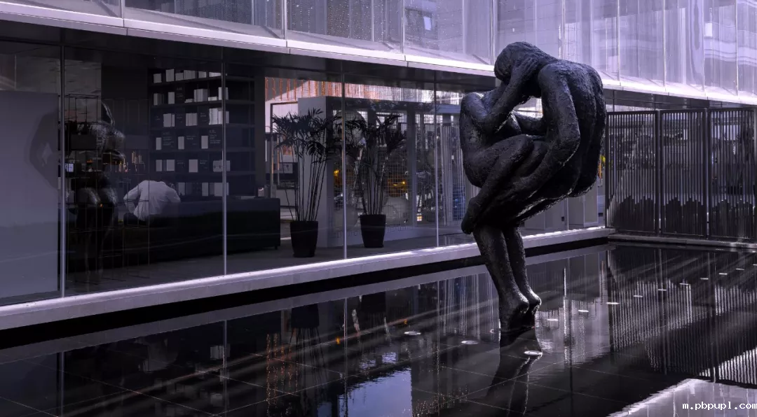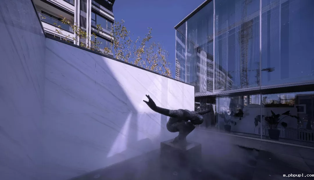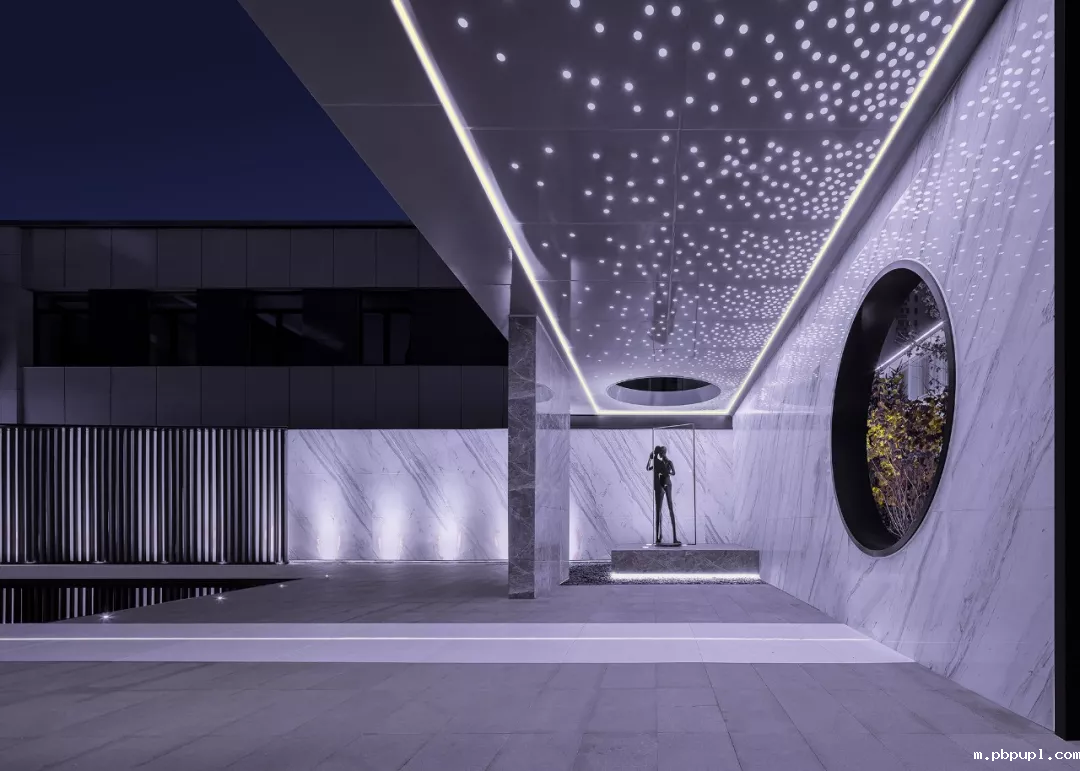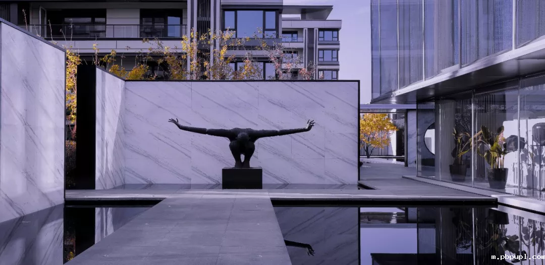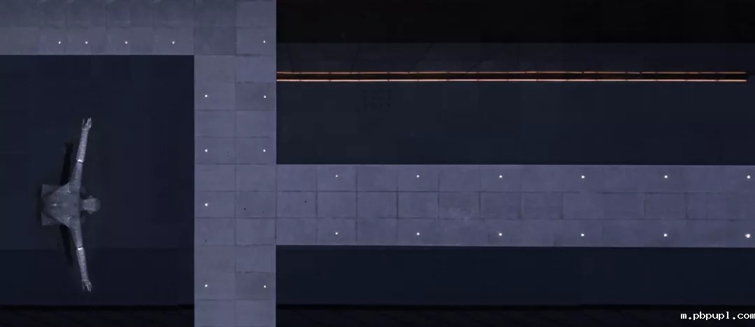 步道尽头的人形雕塑双手平举,伸展到极致的肌肉纹理,仿佛是玻璃幕墙与星光景墙的支撑,为两边景观塑造了一个完美的平衡点。