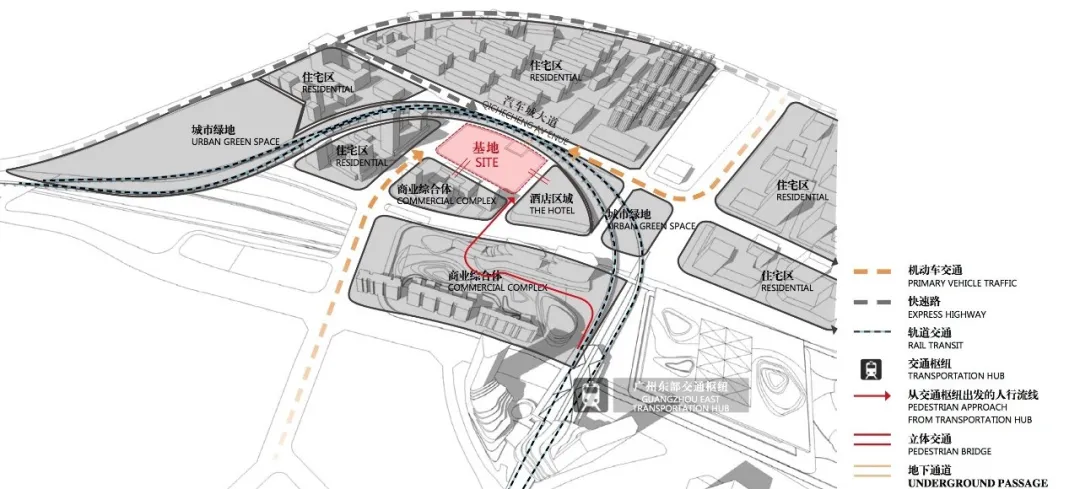 广州保利·335金融中心打造的不仅是城市的最高高度,更布局TOD模式,处于广园高速道路、增城地铁及穗莞深城轨轨迹交通的交界处,以城市交通枢纽为“流动的活水”,将人与人紧密联系一起。