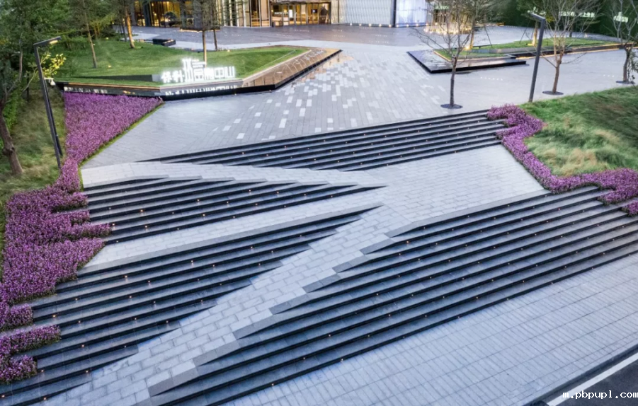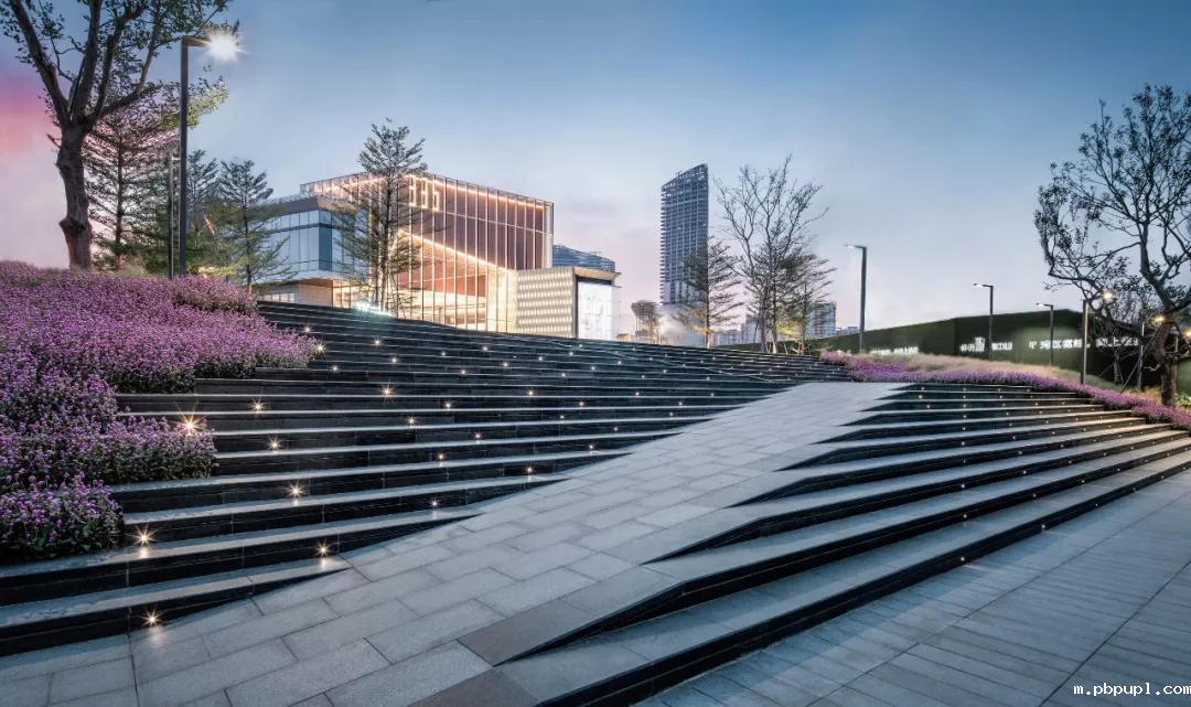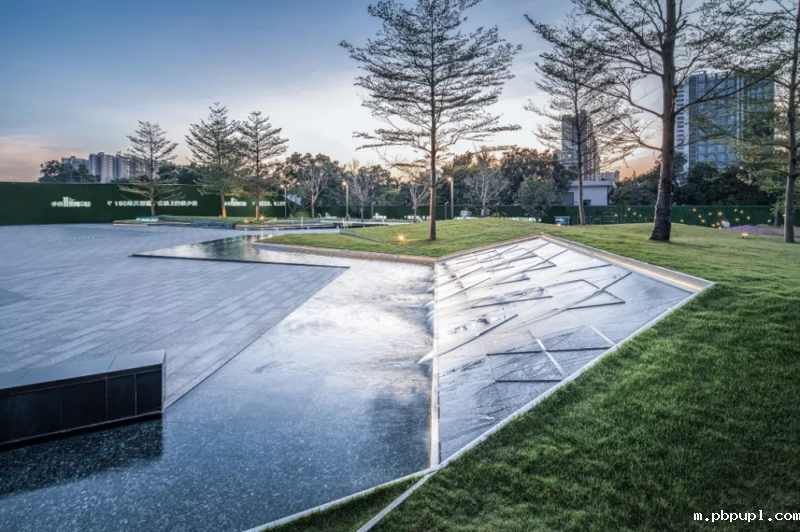 水景、植物、灯光、道路、铺装、广场在折线艺术的布局下,线性与层叠的巧妙结合,让园林空间既若即若离又紧密相连,既丰富空间感又个性十足,足以令人留下印象,整个园林空间的各种元素已浑然一体。