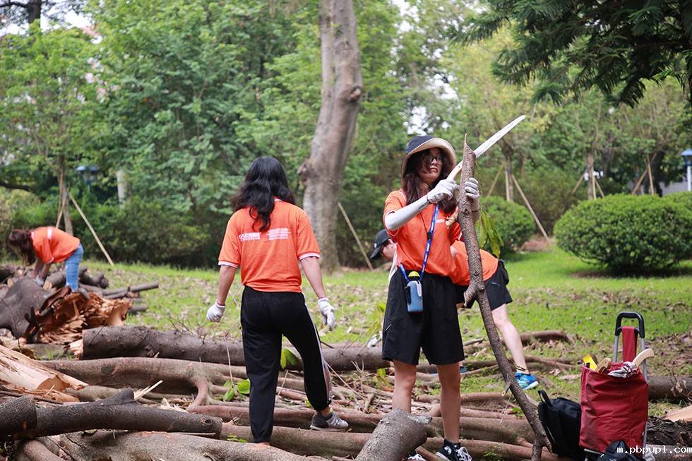 巾帼不让须眉,纤纤玉手平时画惯了图,到了现场处理树枝,专业技术也是杠杠的。“女汉子力”爆发起来连自己都怕。